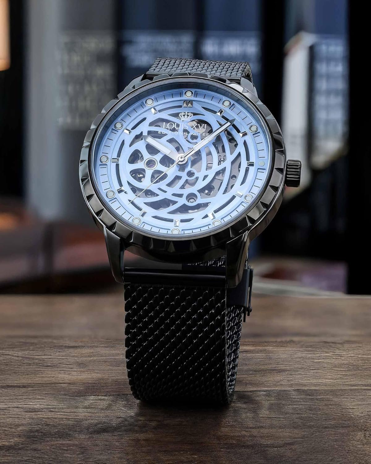 LOUIS XVI Paris 2.0 Automatique 2030 – Ø 45 mm – Montre Homme – Étanche – Montre Squelette – Bracelet Noir – Cadran Bleu – Montre Automatique