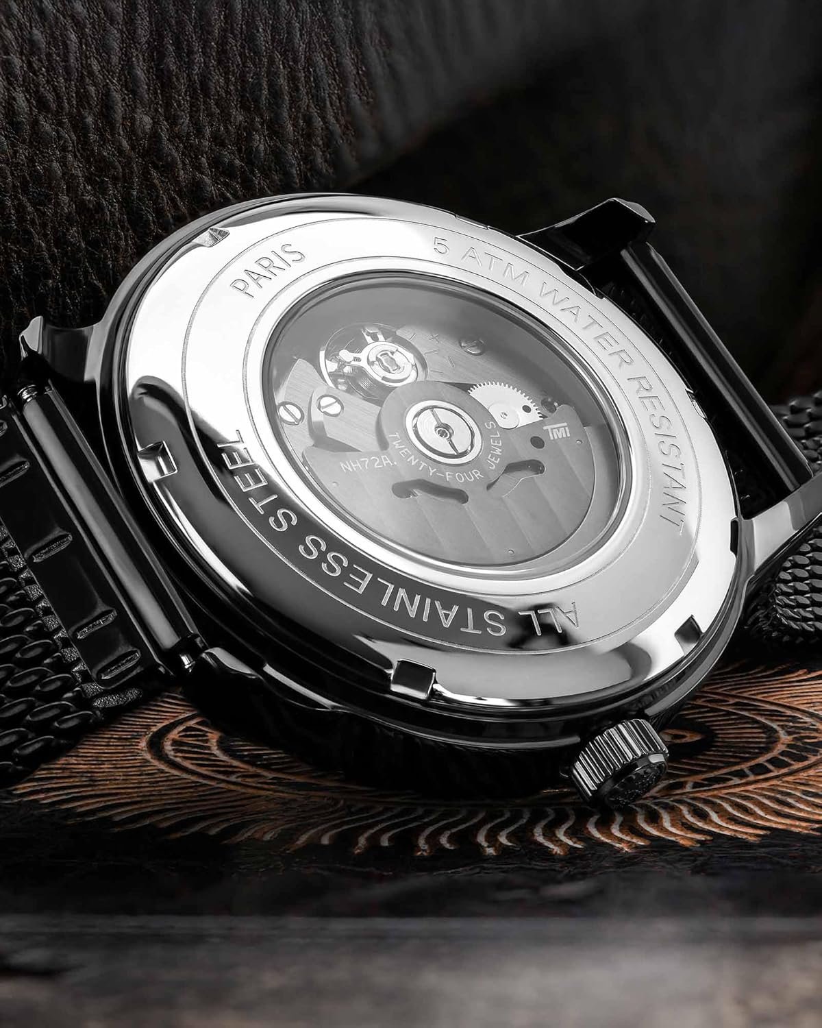 Noir et bleu : un contraste puissant qui attire immédiatement l'attention. Le cadran squelette montre le mouvement automatique précis en action et confère à la montre un caractère sportif et élégant. Parfait pour tous ceux qui veulent se démarquer sans être bruyants. Cadran bleu profond avec design squelette – Technique que l'on voit – Boîtier noir en acier inoxydable 316L – Robuste, distinctif, verre saphir résistant aux rayures – Assure une vision claire – Bracelet milanais léger – Confort maximal – Mouvement automatique – Fonctionne de manière fiable sans changement de batterie 👉 Pour tous ceux qui montrent du caractère, que ce soit au quotidien ou lors d'occasions spéciales.